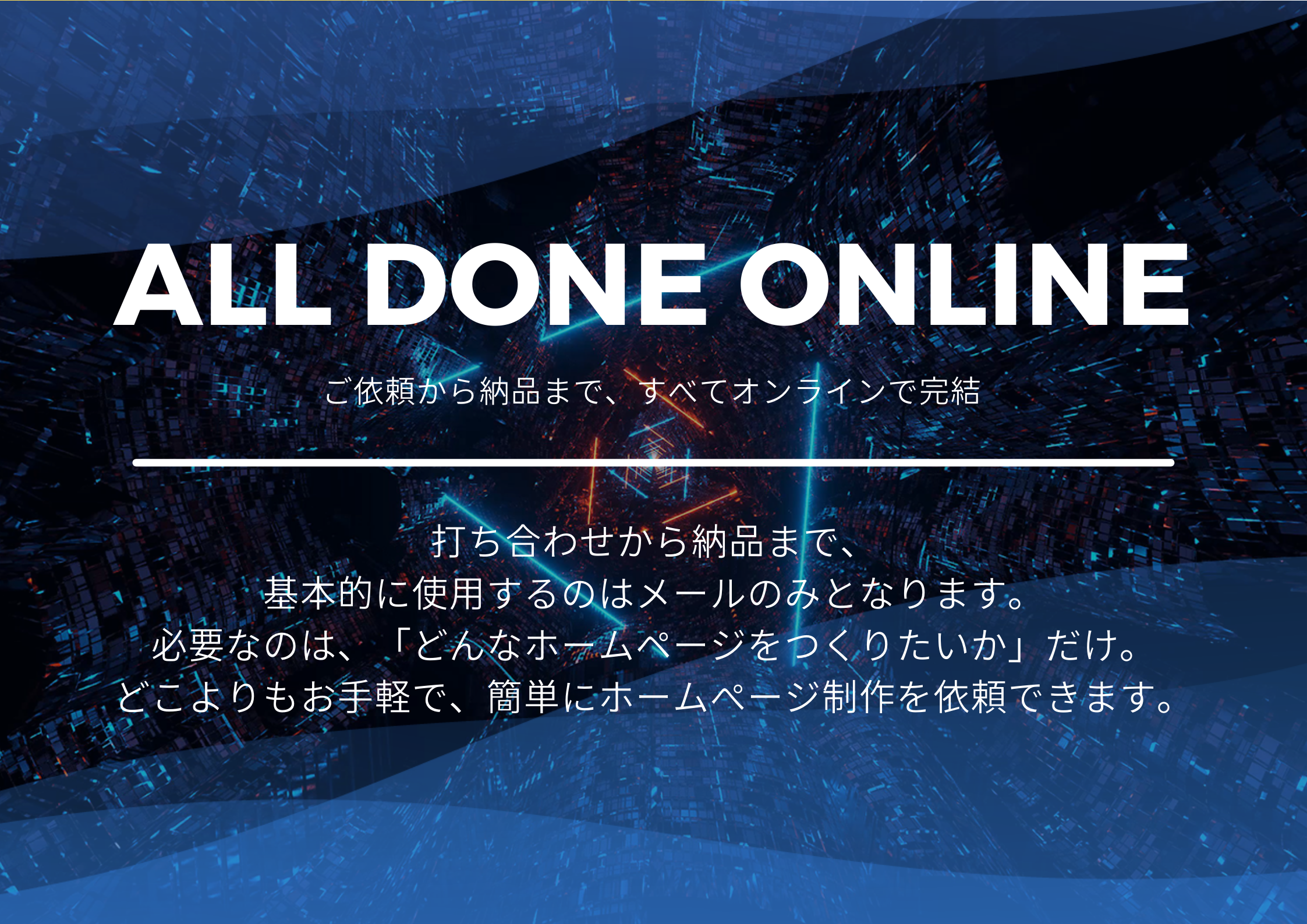 打ち合わせから納品まで、基本的に使用するのはメールのみとなります。必要なのは「どんなホームページをつくりたいか」、ただそれだけです。