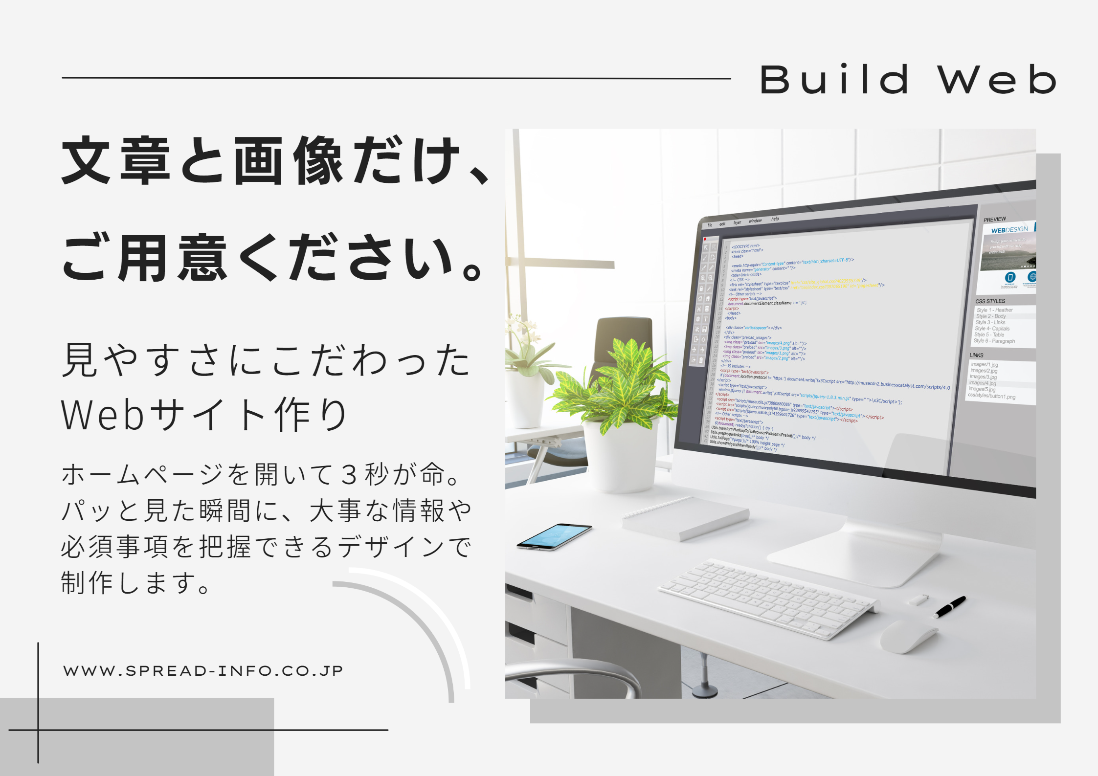 ページを開いて3秒が命。パッと見た瞬間に、大事な情報や必須事項がわかりやすいデザインで制作します。